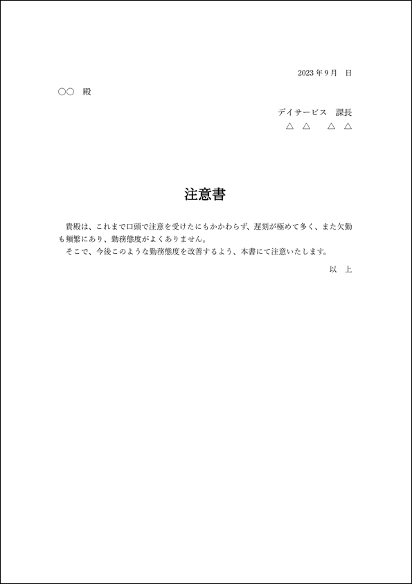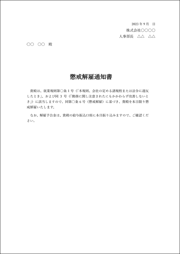 懲戒解雇通知書