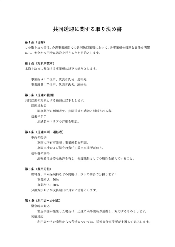 共同送迎に関する取り決め書