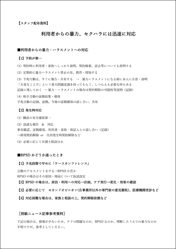 【スタッフ配布資料】利用者からの暴力、セクハラには迅速に対応